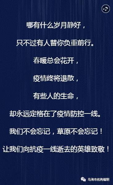 讓我們向抗疫一線(xiàn)逝去的英雄致敬!