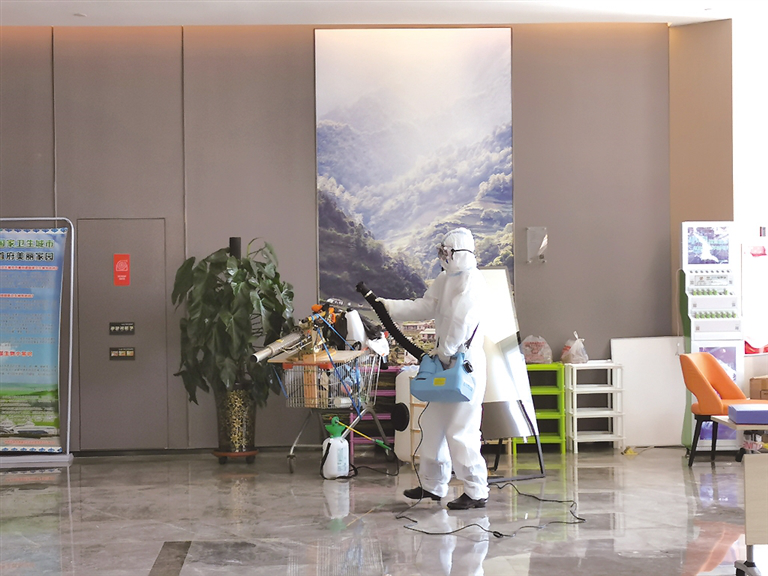 工作人員正在消毒
