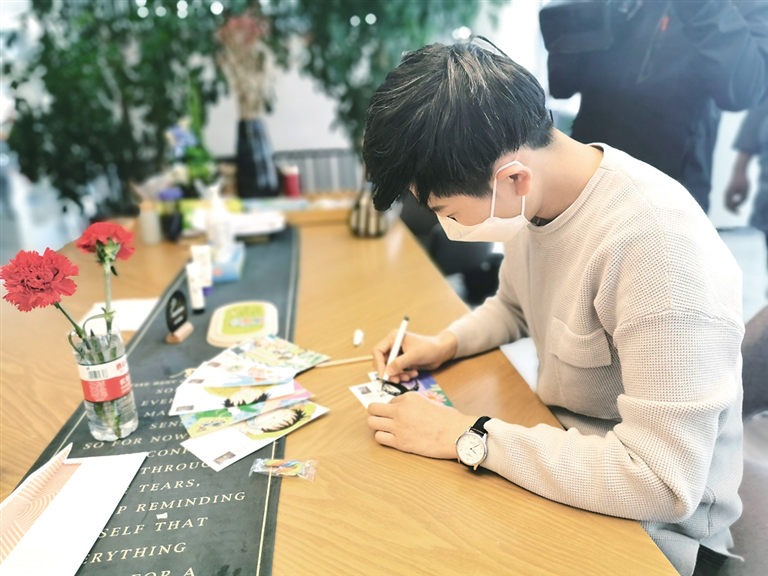 4月7日,在門(mén)口登記信息、測(cè)量體溫、消毒殺菌、換上醫(yī)用外科口罩,做完一系列準(zhǔn)備工作,工作人員才準(zhǔn)許記者進(jìn)入酒店。在明亮的大廳里,伴著緩緩流淌的音樂(lè),亞朵酒店的總經(jīng)理栩墨正伏在桌上認(rèn)真地制作手繪卡:美麗的大草原、精致的蒙古包、手捧著哈達(dá)的蒙古族姑娘……融匯各種元素的手繪卡片擺了滿滿當(dāng)當(dāng)一桌子。隔離人員中很多都是在外留學(xué)的孩子,當(dāng)他們初次收到精心制作的手繪卡時(shí)都一臉驚艷:“好可愛(ài)”“太棒了”“酒店里住著一個(gè)專屬設(shè)計(jì)師嗎?”“這隔離生活簡(jiǎn)直像談了一場(chǎng)戀愛(ài)”。