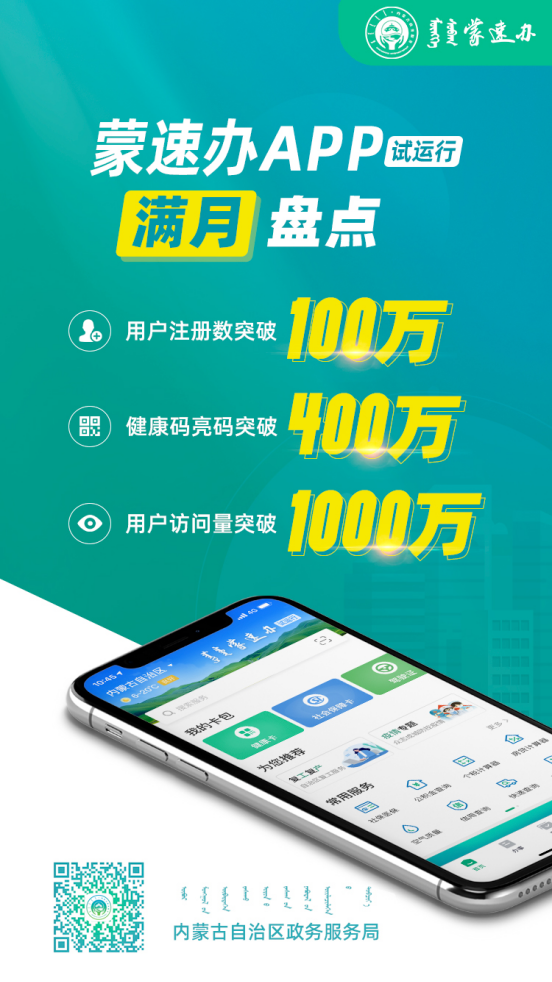 為統(tǒng)籌推進(jìn)新冠肺炎疫情防控和經(jīng)濟(jì)社會發(fā)展,充分應(yīng)用大數(shù)據(jù)手段助力科學(xué)精準(zhǔn)管理疫情防控期間人員流動,保障人民群眾出行安全便利和企業(yè)有序復(fù)工復(fù)產(chǎn),按照內(nèi)蒙古自治區(qū)疫情防控指揮部的要求,依托“蒙速辦”APP安全、穩(wěn)定的平臺優(yōu)勢,對接了自治區(qū)衛(wèi)生健康委“居民電子健康卡”承載的“健康碼”功能,在疫情防控期間,發(fā)揮運(yùn)維團(tuán)隊24小時響應(yīng)機(jī)制的優(yōu)勢,擴(kuò)充客服團(tuán)隊,全力保障“健康卡”的順利申領(lǐng)。功能上線一周,全區(qū)居民通過“蒙速辦”亮碼通行突破120萬次,“蒙速辦”APP累計訪問量突破200萬,下載量在iOS應(yīng)用市場政務(wù)服務(wù)類APP排行榜中位居前5位。在自治區(qū)防控新冠肺炎疫情的關(guān)鍵時期,作為自治區(qū)推出的重要惠民工具和無接觸式居民電子健康證明發(fā)揮了重要作用,“蒙速辦”APP也在疫情防控期間成為領(lǐng)取“健康碼”的重要渠道。