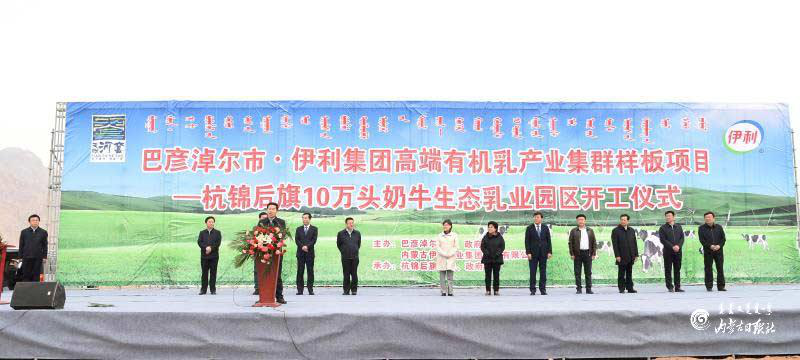 4月18日,巴彥淖爾市?伊利集團(tuán)高端有機(jī)乳產(chǎn)業(yè)集群樣板項(xiàng)目——杭錦后旗10萬頭奶牛生態(tài)乳業(yè)園區(qū)開工。自治區(qū)黨委副書記、自治區(qū)主席布小林,自治區(qū)副主席艾麗華出席開工儀式。高曉龍攝