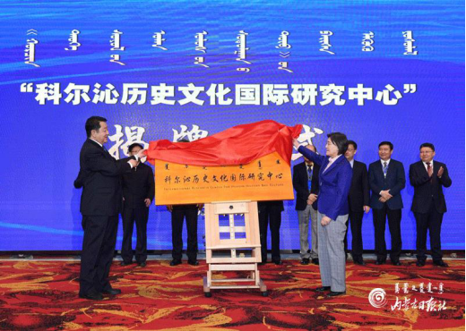4月29日下午,自治區(qū)黨委副書記、自治區(qū)主席布小林為科爾沁歷史文化國際研究中心揭牌。內(nèi)蒙古日報社融媒體記者韓卿立攝