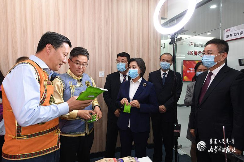 5月8日下午,內(nèi)蒙古品牌形象宣介活動(dòng)在呼和浩特啟動(dòng)。自治區(qū)黨委副書記、自治區(qū)主席布小林,自治區(qū)黨委常委、自治區(qū)常務(wù)副主席馬學(xué)軍,自治區(qū)黨委常委、宣傳部部長(zhǎng)白玉剛,自治區(qū)副主席鄭宏范參觀直播帶貨活動(dòng)。