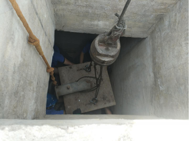 三、安全員對提下泵前各項(xiàng)工作進(jìn)行檢查,是否正確佩戴安全防護(hù)用品、是否斷電、對井室進(jìn)行先通風(fēng)、后對有害氣體進(jìn)行檢測,檢查井室內(nèi)有無對工作有影響的雜物等,簽下井作業(yè)票,確保安全后,作業(yè)人員下井工作。
