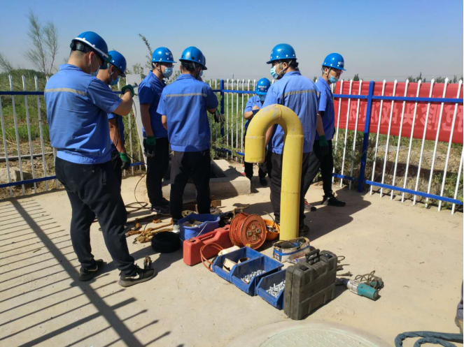 二、所有作業(yè)人員集合,進(jìn)行提下泵前安全工作布置現(xiàn)場班組會。