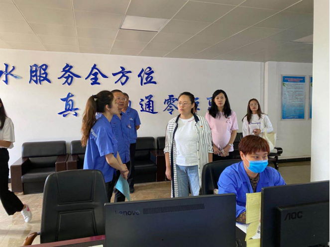 供水公司團(tuán)總支迎接烏海市基層組織建設(shè)“百日攻堅”專項行動督導(dǎo)組調(diào)研試點工作。8月18日上午由團(tuán)市委組宣部部長龔書瑤帶隊,團(tuán)市委組宣部副部長王子璇、團(tuán)市委及海區(qū)團(tuán)委多名團(tuán)干共同組成的調(diào)研隊來到供水公司“青年愛里”實地調(diào)研走訪,供水公司黨委副書記王永斌、團(tuán)總支書記陳琳、團(tuán)總支文體委員張煜敏、營業(yè)團(tuán)支部書記趙玲、營業(yè)團(tuán)支部支委余鴻一起陪同調(diào)研。