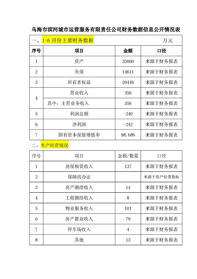 烏海市濱河城市運(yùn)營服務(wù)有限責(zé)任公司2025年第二季度信息公開