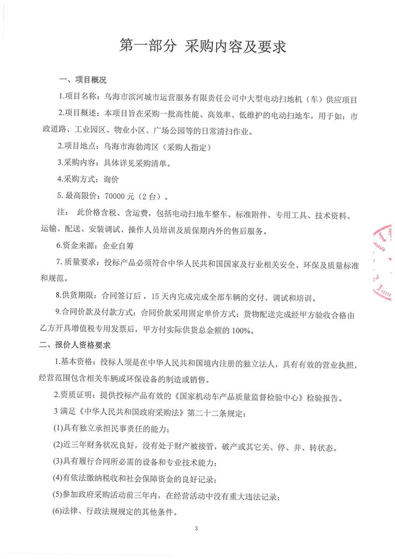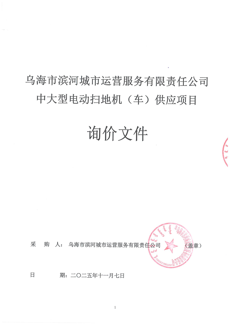 烏海市濱河城市運(yùn)營(yíng)服務(wù)有限責(zé)任公司中大型電動(dòng)掃地機(jī)(車(chē))供應(yīng)項(xiàng)目詢(xún)價(jià)文件