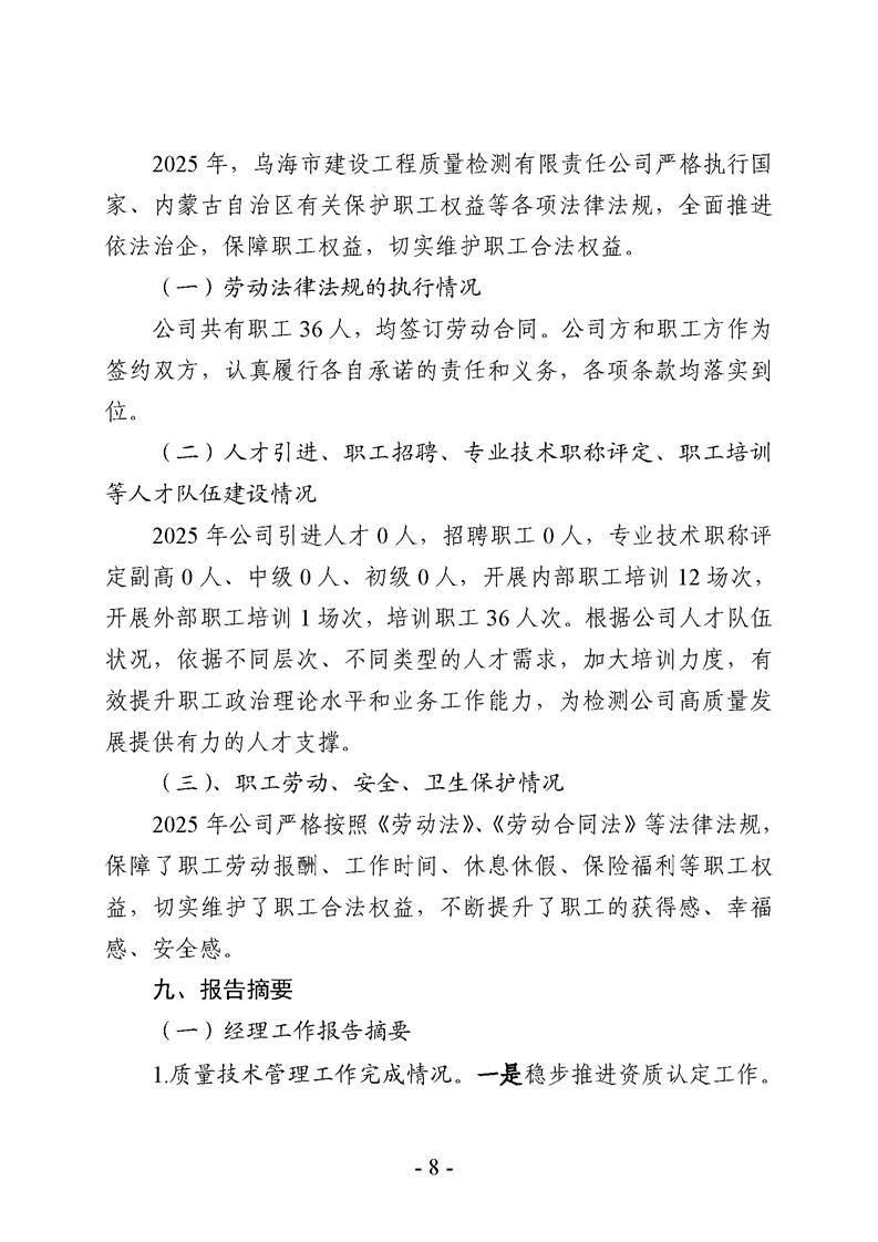 - 2025-03-10烏海市建設(shè)工程質(zhì)量檢測有限責(zé)任公司2024年度信息公開報(bào)告