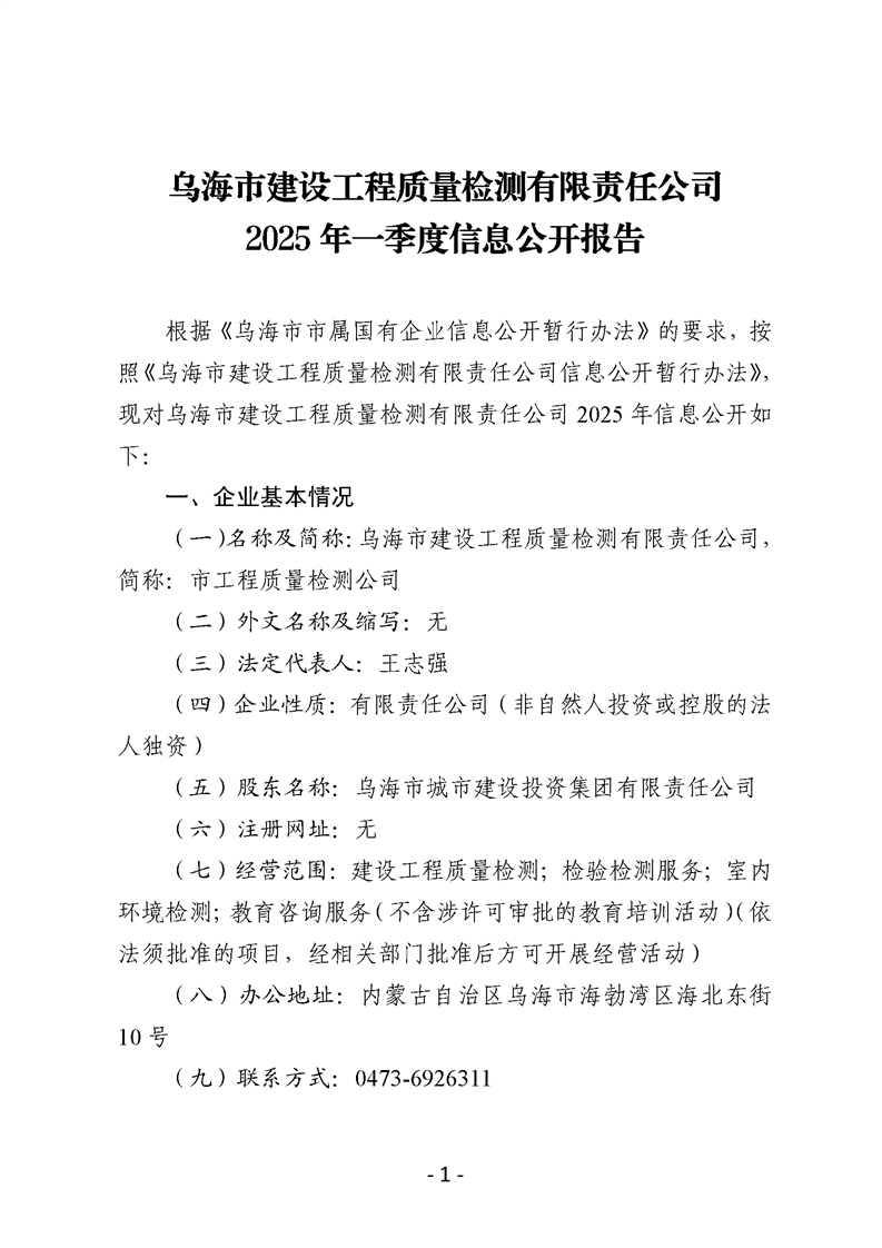 - 2025-07-28烏海市建設(shè)工程質(zhì)量檢測有限責(zé)任公司2025年二季度信息公開