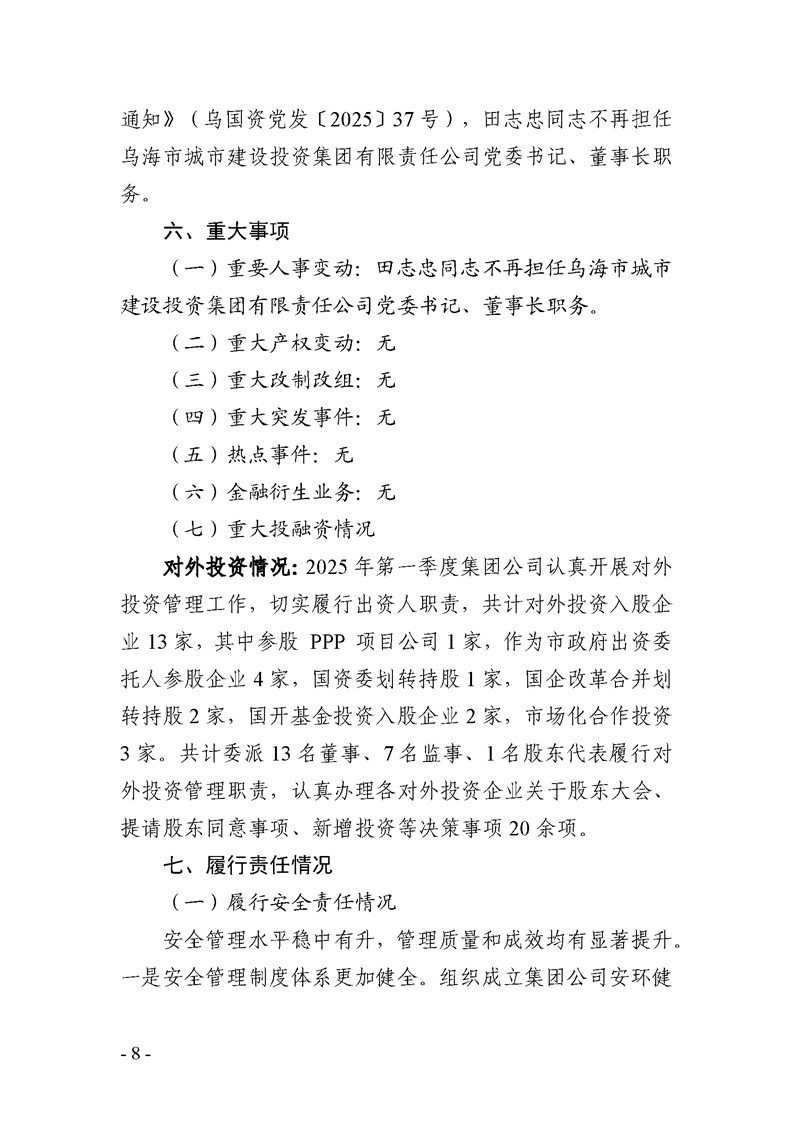 - 2025-07-25烏海市城市建設(shè)投資集團(tuán)有限責(zé)任公司 2025年度第二季度信息公開報(bào)告