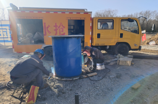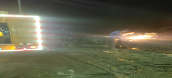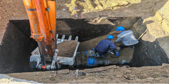 電焊組的師傅們頭戴面罩,手持焊槍,瞬間火花四濺,在黑暗中綻放出奪目光芒,熟練地進(jìn)行切割與焊接工作,其他人員則全力投入到拆卸工作中,他們齊心協(xié)力,將DN800蝶閥、DN800鑄鐵乙管、三通、伸縮器等部件逐一拆卸。盡管汗水濕透了衣衫,雙手被工具磨出了水泡,但沒(méi)有一個(gè)人喊累,所有人的目光都堅(jiān)定地聚焦在搶修任務(wù)上。